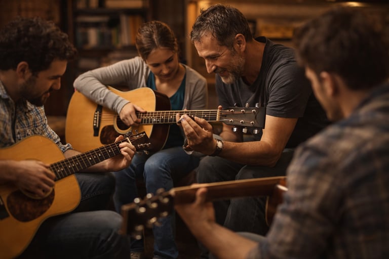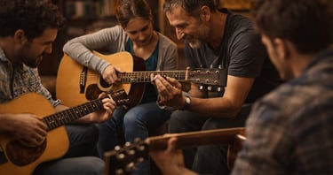 Muitos alunos que antes travavam em acordes como F ou Bm hoje conseguem tocar músicas completas com muito mais confiança e clareza.