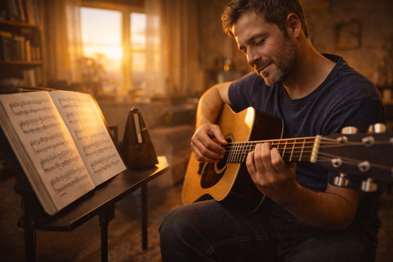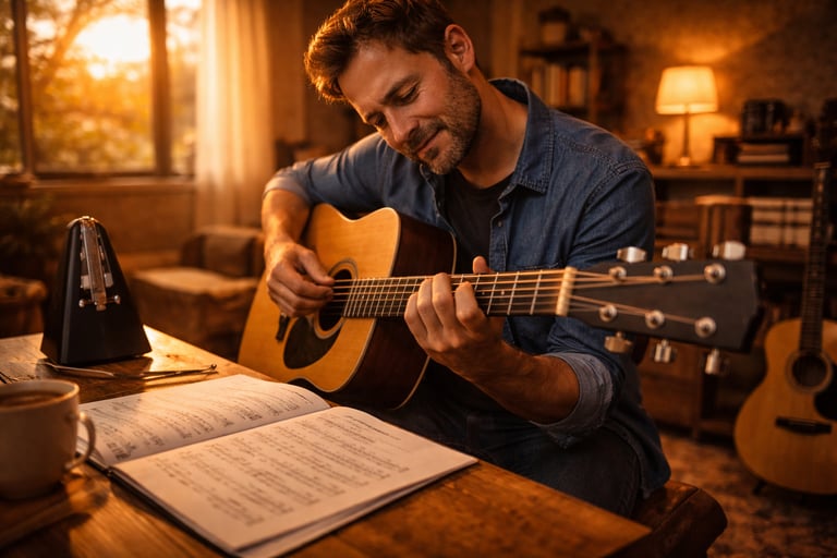 Um plano simples e prático que mostra como evoluir no violão mesmo com pouco tempo de prática por dia.